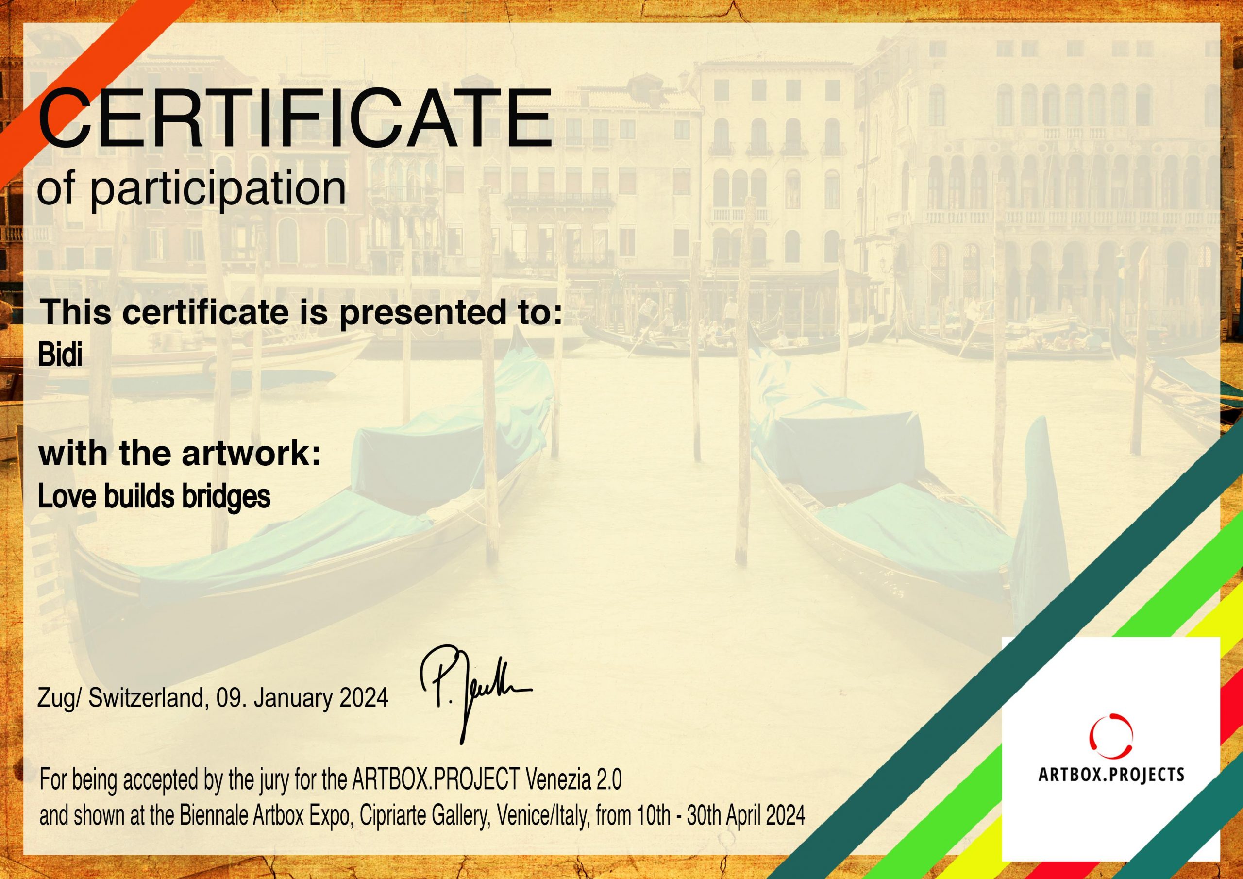 Love builds bridges Love builds bridges Mixed media Technik. Acryl auf Leinwand Schlagmetall gold; 50cm x 50cm x5cm ; 580 Euro